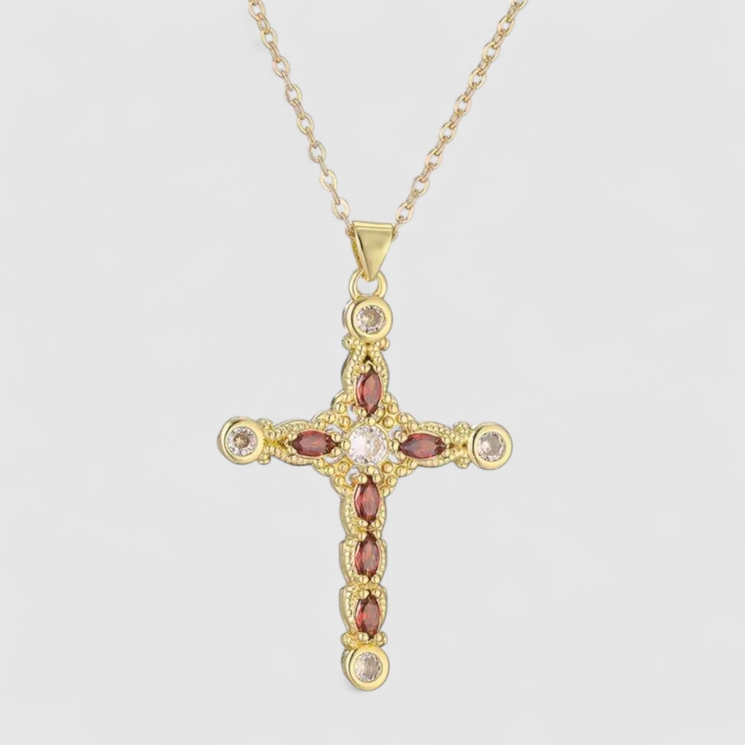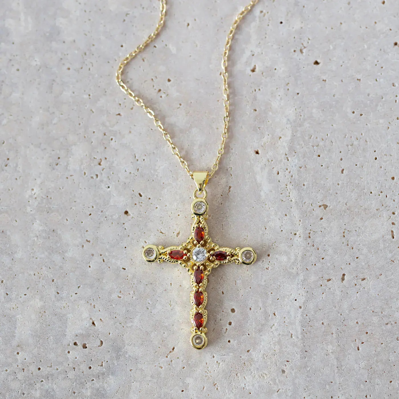 Nádherný náhrdelník s úchvatným křížem, zdobený vysoce kvalitními kubickými zirkony. Řetízek je tenký a luxusní. Pokovený 18karátovým zlatem. Tuto krásu můžete nosit ve dne i v noci. Hodí se ke všemu!