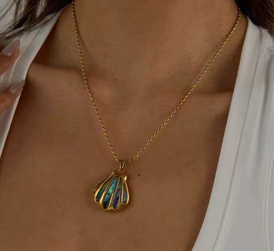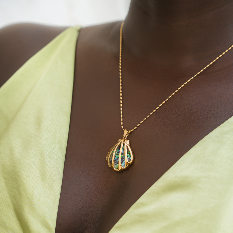 Zlatá mušle s duhovým leskem uvnitř, neboli váš nový talisman pro štěstí. Voděodolná, roztomilá na každý den a vždy připravená zářit s vámi od brunche po procházky po pláži.