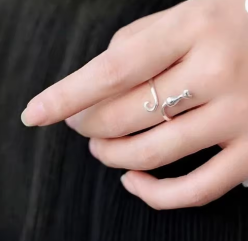 Tento rozkošný prsten z nerezové oceli v podobě kočky kombinuje odolnost s okouzlujícím designem, což z něj dělá perfektní doplněk pro milovníky koček. Jeho elegantní povrchová úprava zajišťuje dlouhodobý lesk, zatímco hravý motiv kočky dodává každému outfitu nádech osobnosti. Tento prsten, který se pohodlně nosí každý den, je ideálním dárkem nebo potěšením pro vás samotné. Projevte svou lásku ke kočkám pomocí šperku, který je stylový a odolný zároveň.
