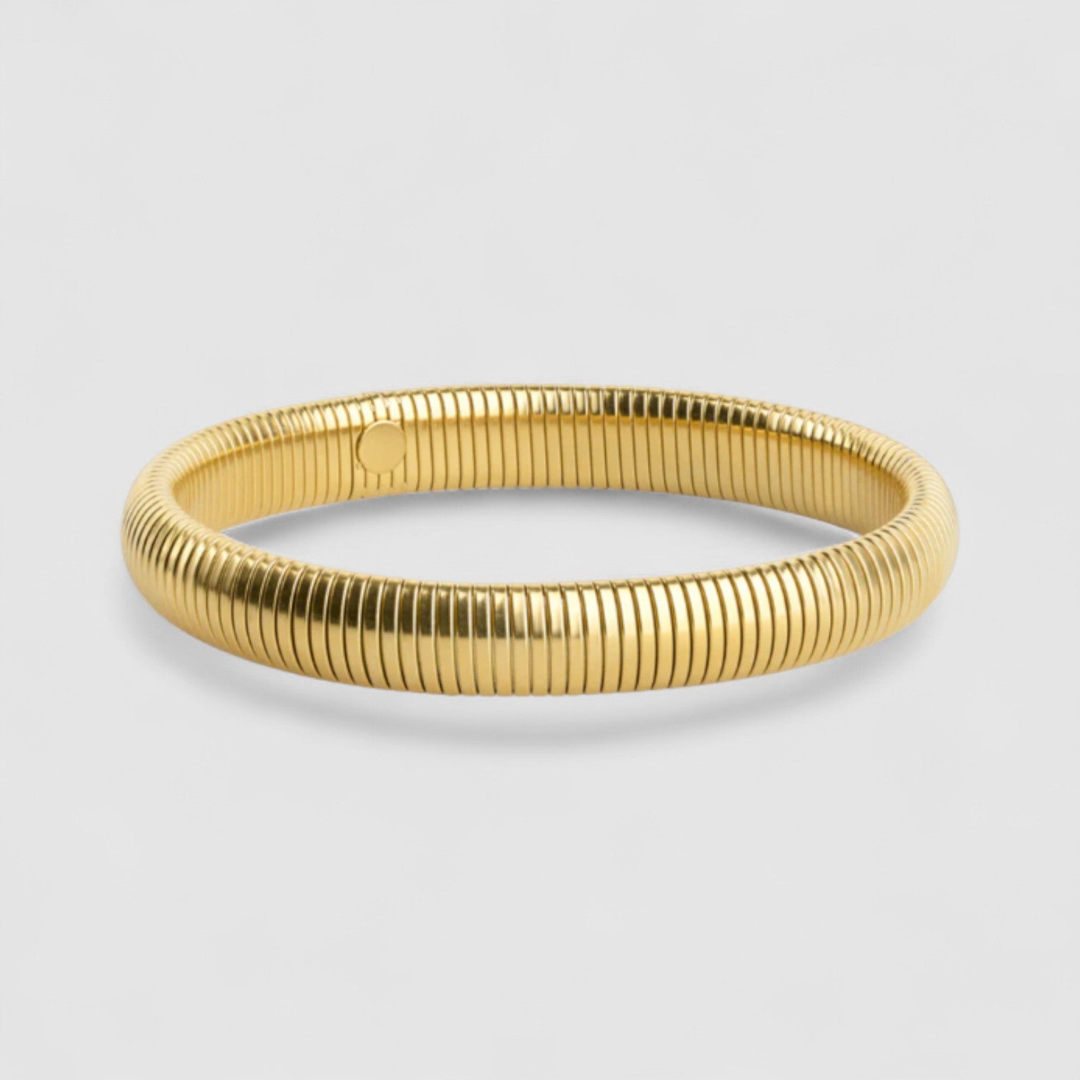 Snadno se nosí a má elegantní styl díky tomuto pružnému náramku. Tento pohodlný náramek z nerezové oceli nabízí flexibilní pružné uchycení, je voděodolný a neoxiduje, takže se snadno kombinuje s dalšími doplňky. K dispozici ve stříbrné a zlaté barvě, aby vyhovoval vašemu stylu a potřebám.