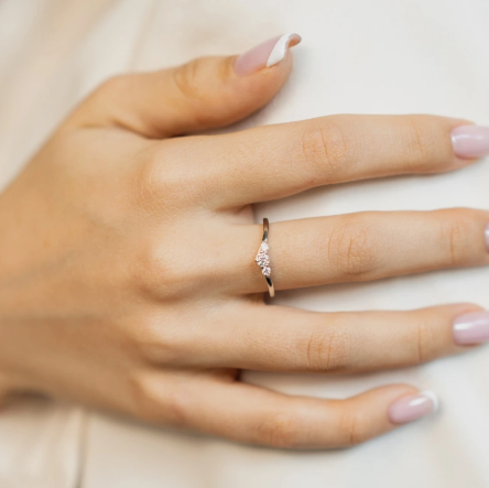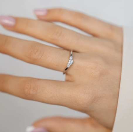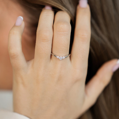 • Tři kameny MOISSANITE: 1x 0,1ct a 2x 0,03 ct.