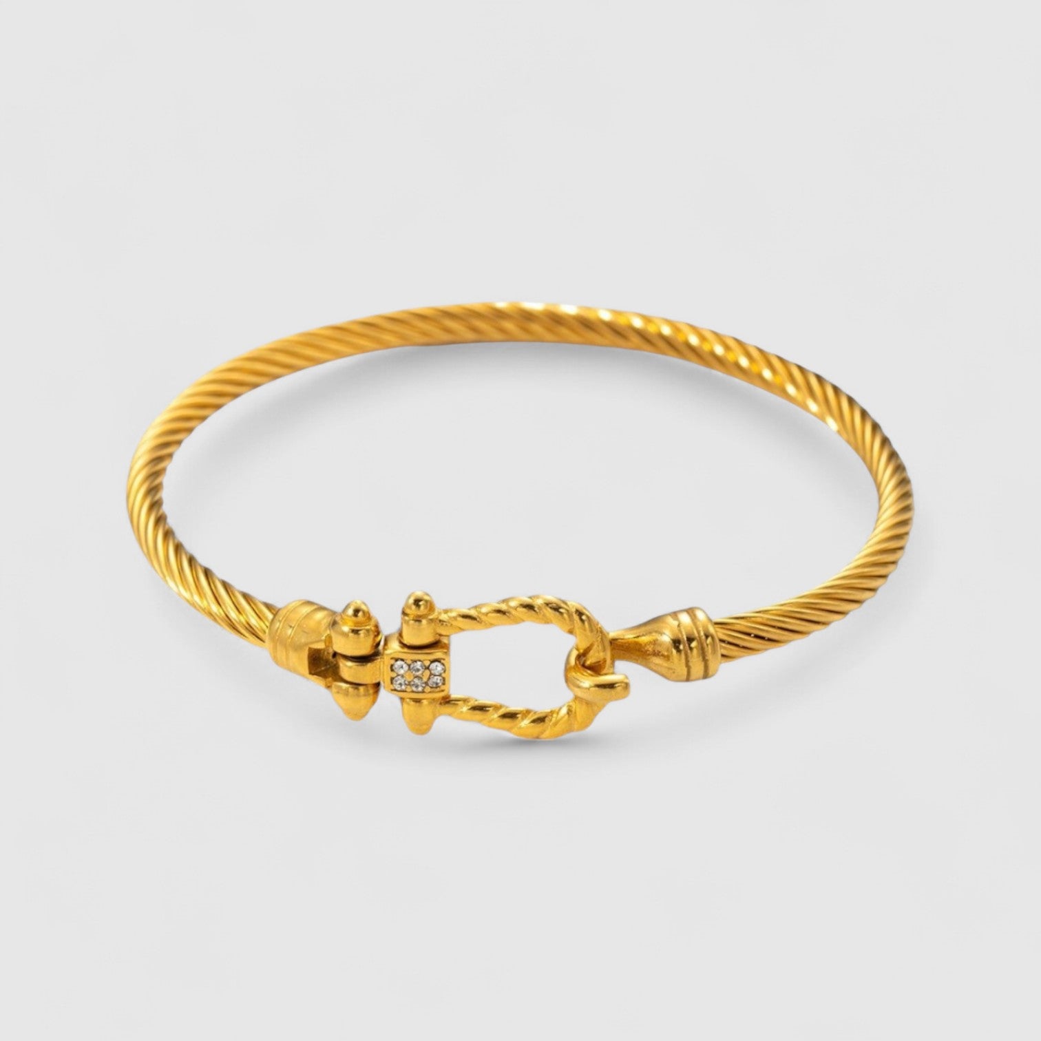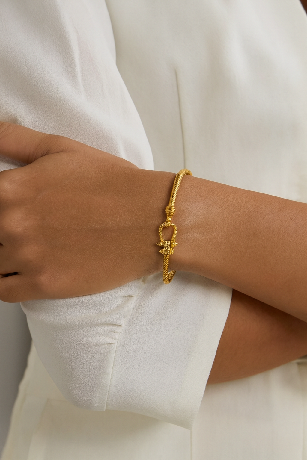 Navržen pro ty, kteří spojují eleganci se silou. Zlatý náramek Rope vyzařuje luxus díky svému točenému kabelovému designu a propracovanému zapínání s jemnými zirkonovými detaily. Lehký na nošení, ale výrazný vzhledem – šperk, který dýchá třídou.