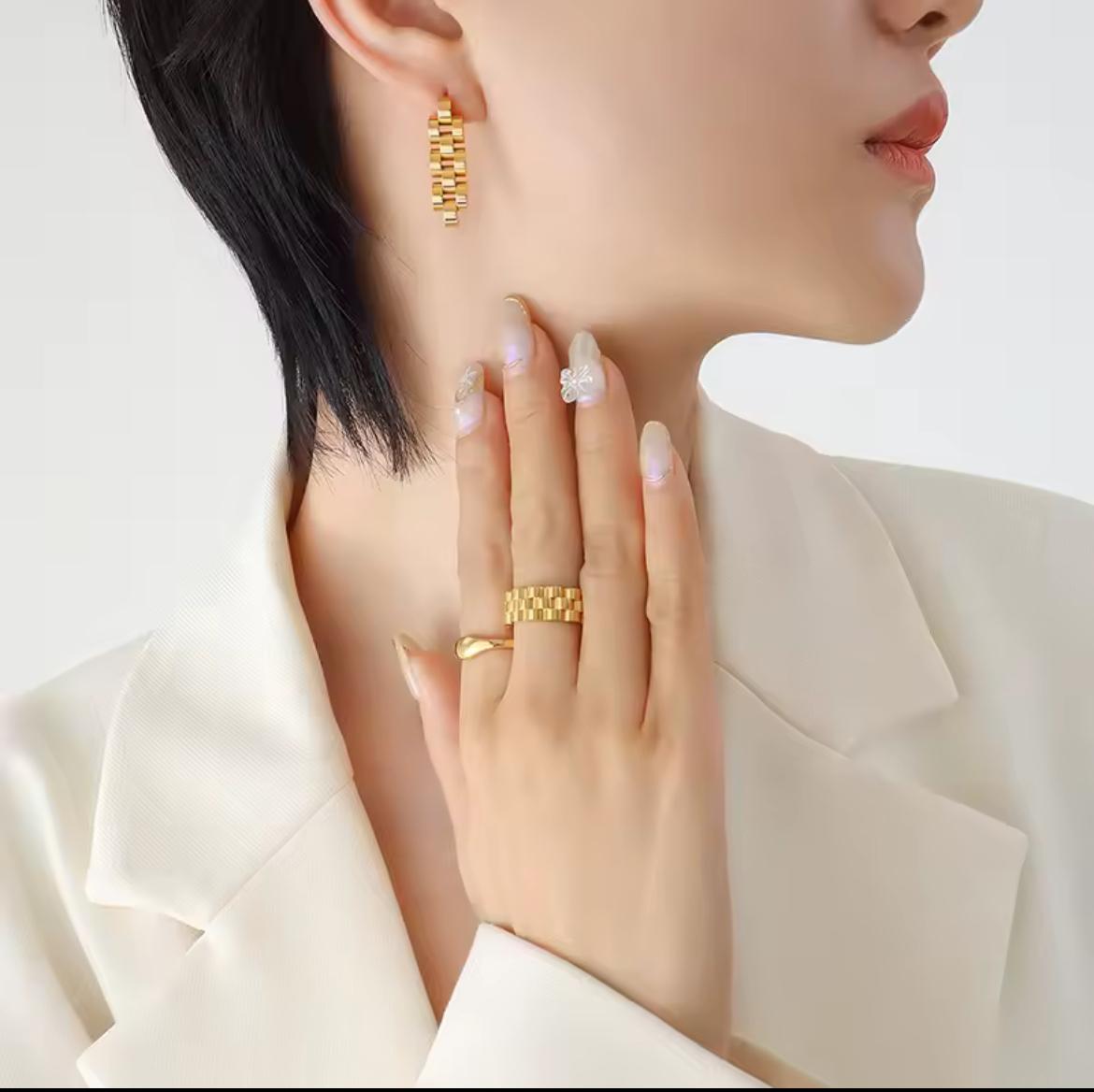 Dodejte svému outfitu dokonalý detail s Tricha Náušnicemi. Elegantní článkový design ve zlatém provedení vytváří výrazný, moderní a luxusní vzhled.